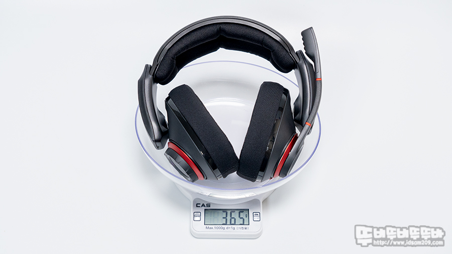 젠하이저 GSP 500 게이밍 헤드셋의 케이블을 제외한 실제 측정 무게는 365g으로 무게감이 있지만, 실제 착용 시 헤어밴드의 무게 분산으로 느끼는 무게감은 유저마다 다를 수 있으니 참고하시기 바랍니다.