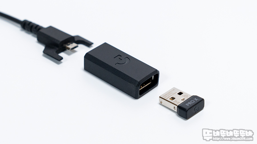 제품에 사용되는 MicroUSB 소켓은 기판 위에 올려지는 SMD 타입을 사용하기에 탈부착 시 약간의 각도로 인해 소켓이 파손되는 것을 방지하기 위해 조금 독특한 몰딩을 사용하여 수신기 연장 어댑터를 사용과 마우스에 직접 연결하여 충전 시 안정감을 주는 편입니다.