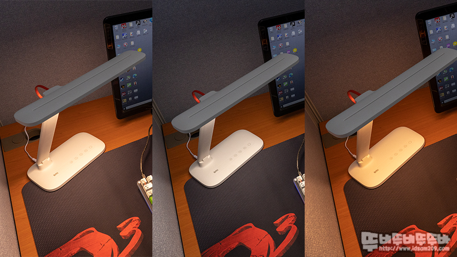 왼쪽부터 자연광/백색광/따뜻한 백색광 3가지 색온도를 한 번에 비교해 본모습.