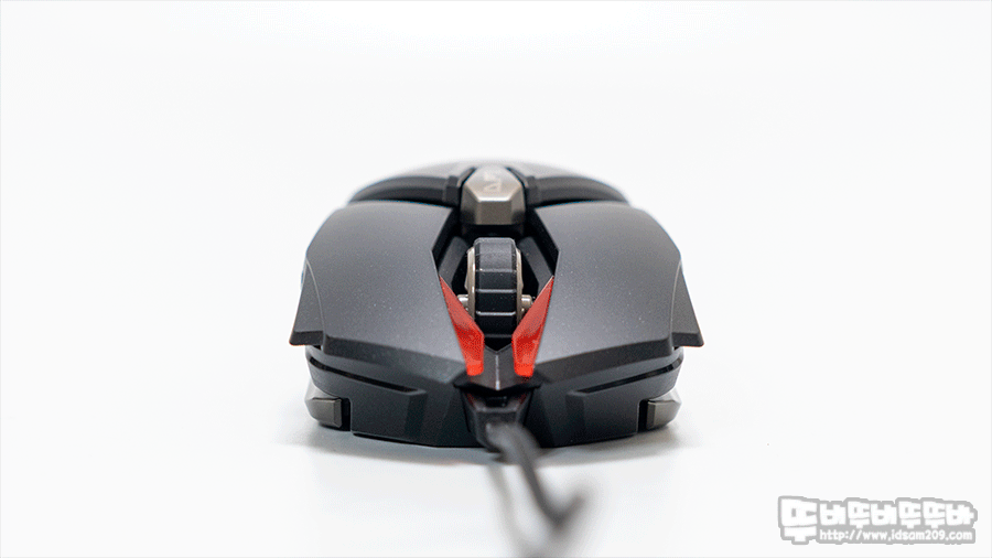 버튼 부에 빨간색 투명 플라스틱은 LED 투영이 되나? 싶었는데 포인트 효과를 주는 디자인으로 장착되어 MadCatz 마우스의 아이덴티티인 레드 컬러를 살려주는 느낌입니다.