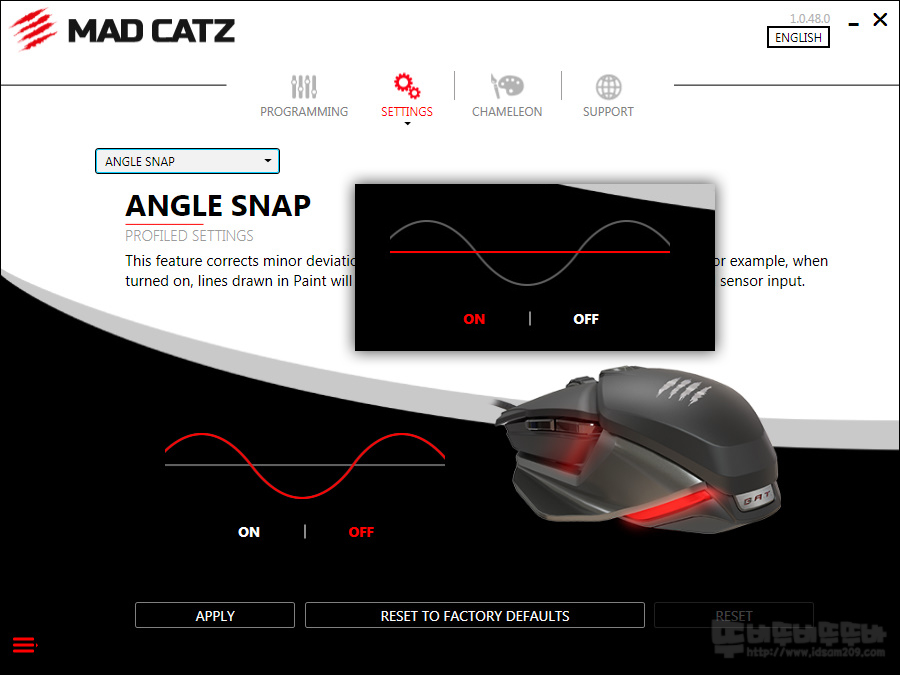 마지막으로 마우스를 좌우로 움직일 때 직선 형태로 만들어주는 앵글 스냅 기능은 On/Off 옵션으로만 제공하기에 FPS 게임에서는 오히려 게임에 방해가 될 수 있으니 충분히 테스트해보고 사용하시기 바랍니다.