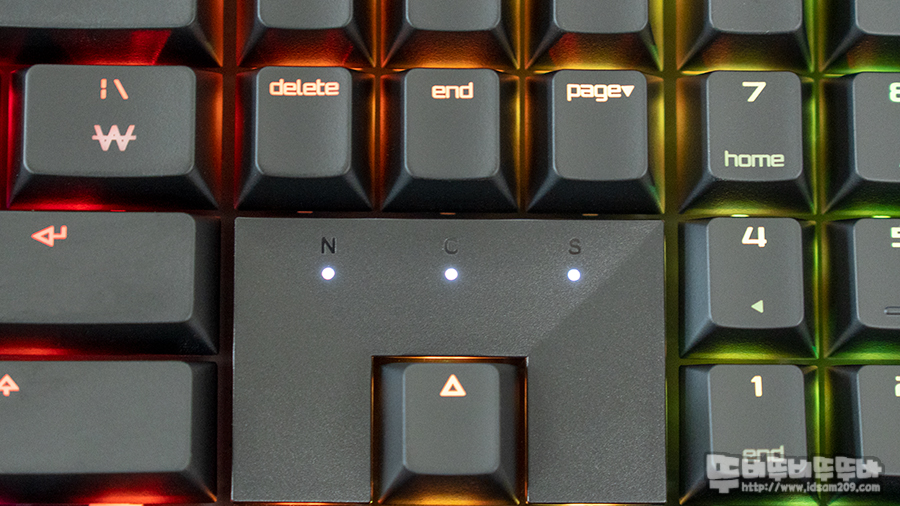 방향키 위에는 Num Lock, Caps Lock, Scroll Lock 키 사용을 알려주는 LED 인디케이터가 위치를 확인할 수 있습니다.
