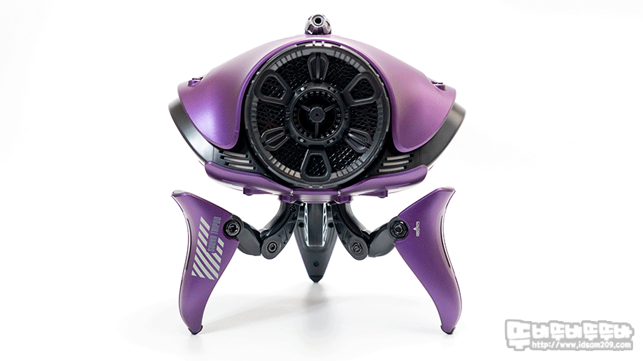 스피커의 강력한 베이스로 인한 진동이 바닥에 전달하는 되는 것을 방지하는 삼각대 구조로 스피커를 공중에 띄워서 안정적인 사운드를 들려주는 제품으로 중저음을 담당하는 미드 베이스 유닛, 고음을 담당하는 트위터 유닛, 양쪽에 베이스를 강화하는 패시브 라디에이터 구조를 사격형이 아닌 우주선 형태로 디자인하여 외형적인 비주얼과 LED 라이팅 사운드 퍼포먼스가 상당이 인상적인 제품입니다.