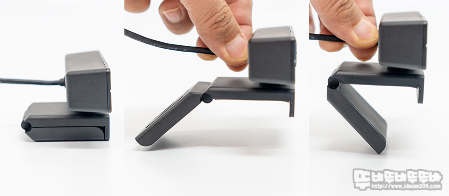 웹캠의 렌즈 부분은 상하/좌우 틸트와 수평 방향으로 360도 회전이 가능하여 제품이 제공하는 시야각 95.8도와 웹캠의 틸트와 회전으로 다양한 앵글로 활용이 가능합니다.