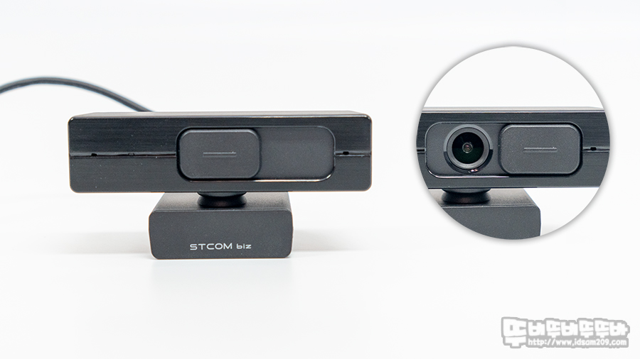 STCOM biz FHD60F 웹캠의 요즘 트렌드라 할 수 있는 프라이버시 보호를 위한 커버를 기본으로 제공하며 웹캡 양쪽에 듀얼 스테레오 마이크가 내장되어있으며 왼쪽 마이크와 렌즈 사이에는 웹캠 작동을 알려주는 LED 인디케이터가 내장되어있으며 웹캠을 사용하는 데 있어 핵심적인 기능은 모두 전면에 배치하고 있습니다.