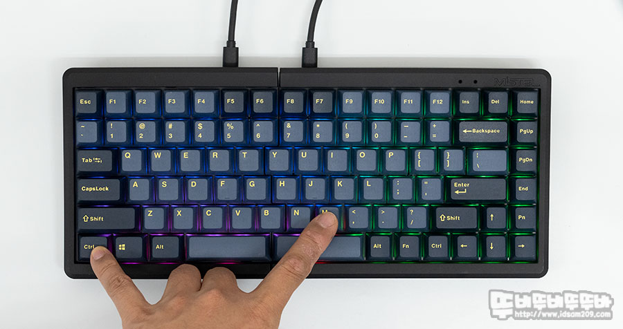 키보드를 사용하는 일반적인 환경에서는 한 손에 손가락을 쭈욱 펴서 단축키를 누르거나 두 손가락으로 사용하는 게 보통이죠.