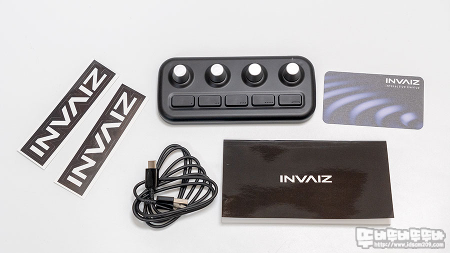 제품은 Grid10-CT 본체, USB-C to A 컴퓨터 연결 케이블, INVAIZ 로고 스피커, 품질 보증카드, 사용 설명서로 구성되어있습니다.