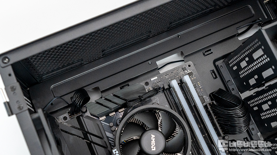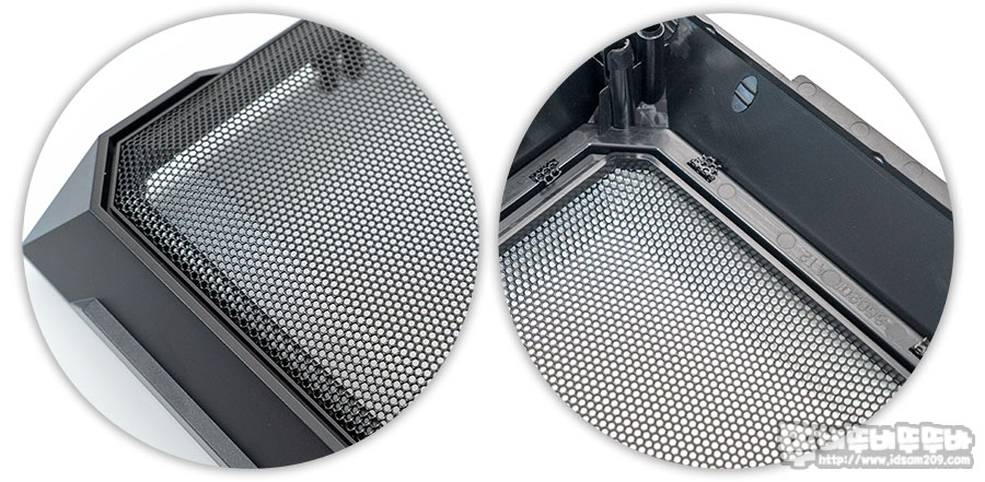 메쉬를 사용한 전면 패널은 통기성에 신경을 쓴 모습이며, 패널 내부는 샤시 전면에 부착된 돌출된 쿨러를 수용할 수 있게 디자인되었습니다.