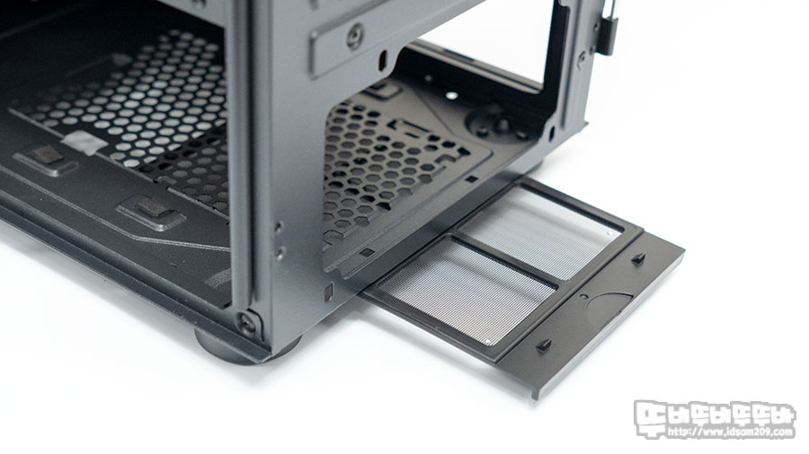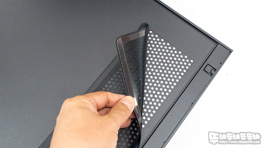 전면 패널에 먼지 필터가 부착돼 있지 않지만 샤시 안쪽 HDD 베이 안쪽에 먼지 필터가 부착되어있으니 참고하시기 바랍니다.