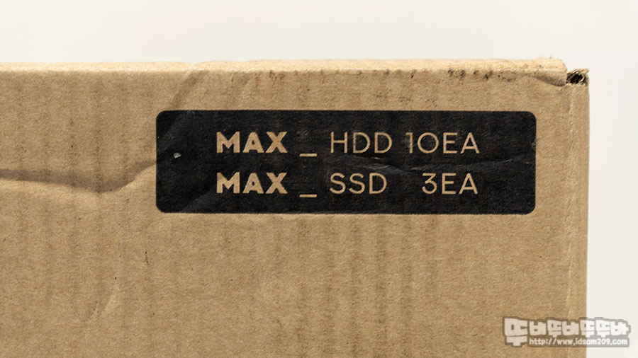 3RSYS CH120 BLACK 케이스의 패키지에는 제품의 외형과 내부 전개도가 인쇄된 디자인에 우측에 HDD 10개, SSD 3개 장착이 가능하다는 문구가 눈에 띕니다.