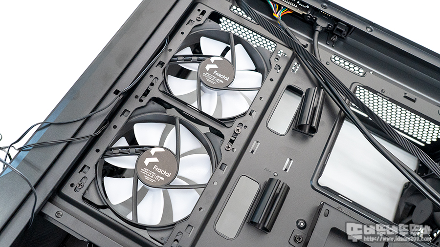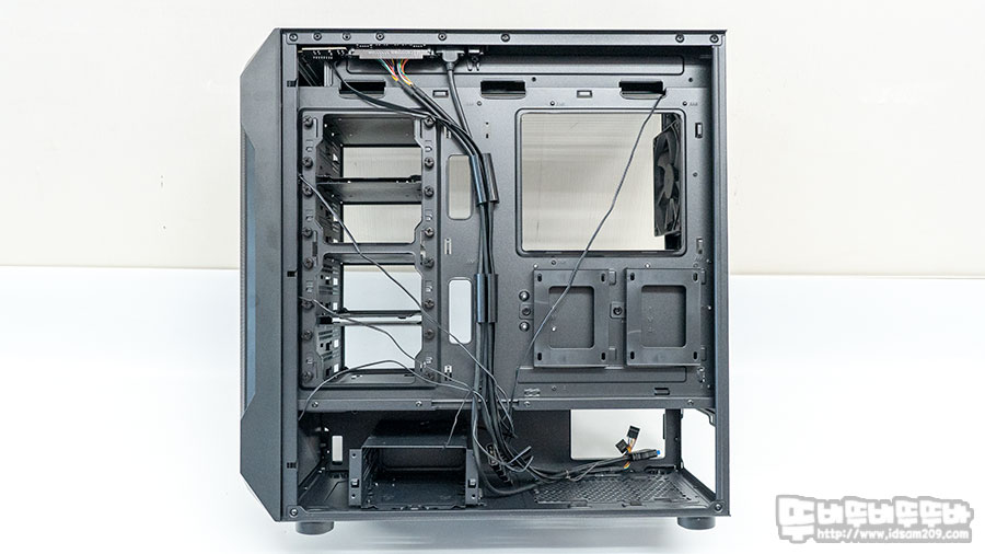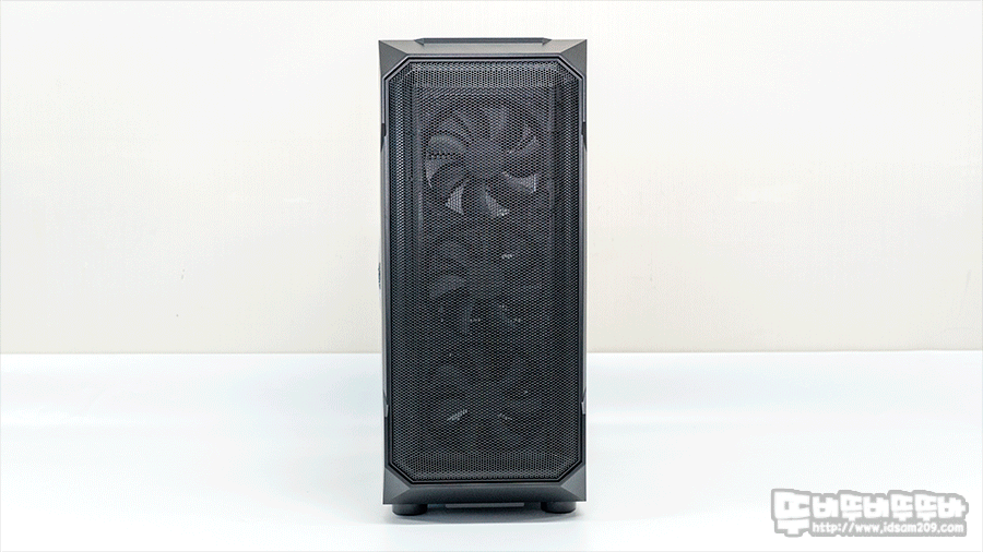 전면 샤시면에 HDD 가이드를 모두 제거하면 120mm 쿨러 2개 장착이 가능하며 240mm 수냉 쿨러 장착으로도 사용이 가능합니다.