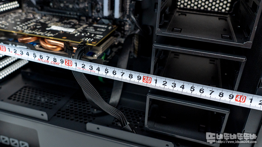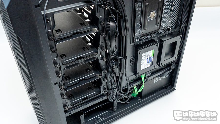 샤시 전면 HDD 장착은 하지 않은 상태에서 선정리는 기본으로 부착된 케이블 가이드 덕에 쉽게 정리할 수 있었는데요.