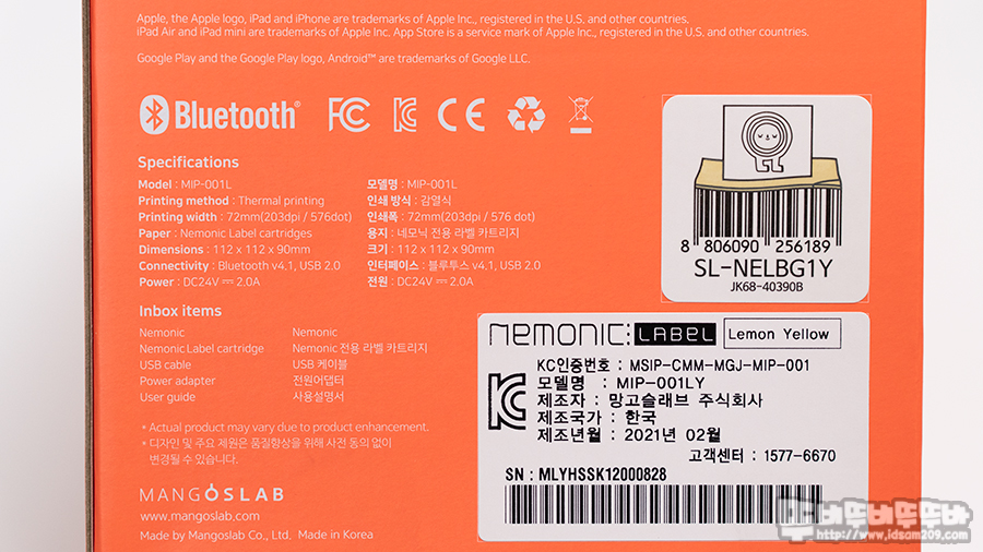 네모닉라벨 패키지는 겉으로 보기엔 상당히 큰 느낌이지만 언박싱 영상을 보시면 내부 완충재가 포함된 패키지 사이즈이니 참고하시고요.