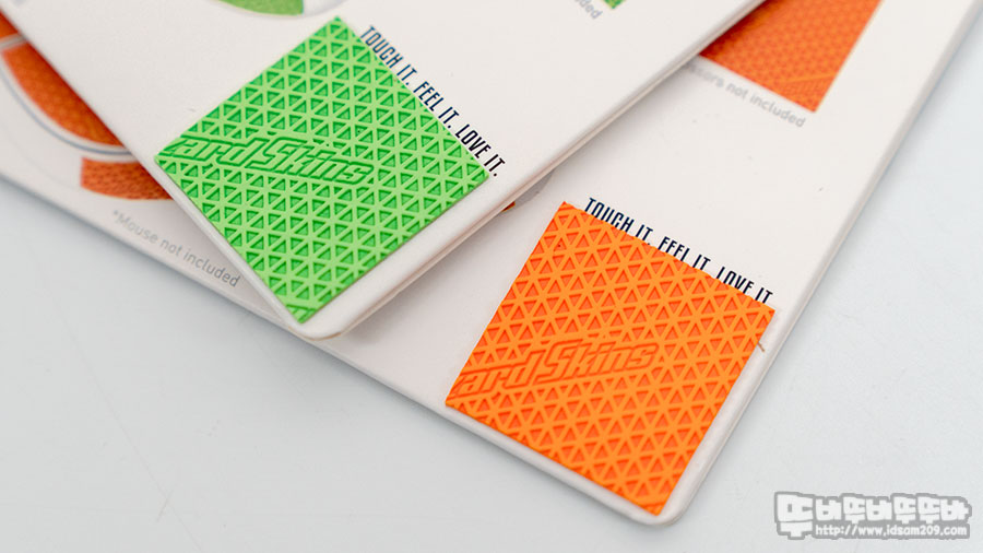 패키지 우측 하단에는 그립 테이프의 느낌을 개봉 전에 느껴볼 수 있는 조그만 그립 테이프가 부착되어있는데 직접 만져보니...