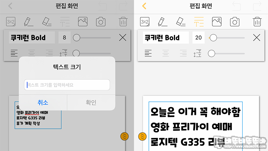 텍스트 크기는 숫자 부분을 눌러 사용자가 숫자를 입력하는 방식과 슬라이드를 이용하여 직관적으로 확인할 수 있으니 둘 중에 편한 쪽으로 사용하시면 될 거 같고요.