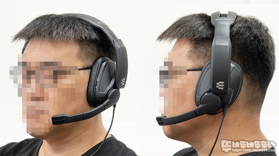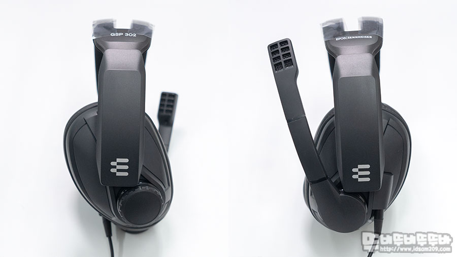 EPOS 젠하이저 GSP 302 게이밍 헤드셋은 대칭형 디자인으로 오른쪽 이어컵 하우징에 볼륨 다이얼, 왼쪽 이어컵 하우징에는 플립 방식으로 자동 On/Off를 지원하는 마이크로 구성되어있으며 헤어밴드는 4cm 길이로 확장이 가능하여 길이 조절이 넉넉한 편이며