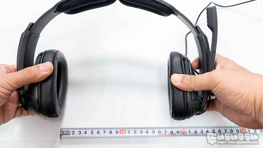 헤드셋의 길이를 늘이지 않은 상태에서 이어패드를 11자 형태로 유지하면서 늘려보면 약 130mm 폭을 확인할 수 있으며 길이를 최대로 늘린 후 이어패드를 11자 형태를 유지하면서 늘려보면 약 180mm 폭으로 다양한 두상에 착용이 가능한 신축성을 보여주었습니다.