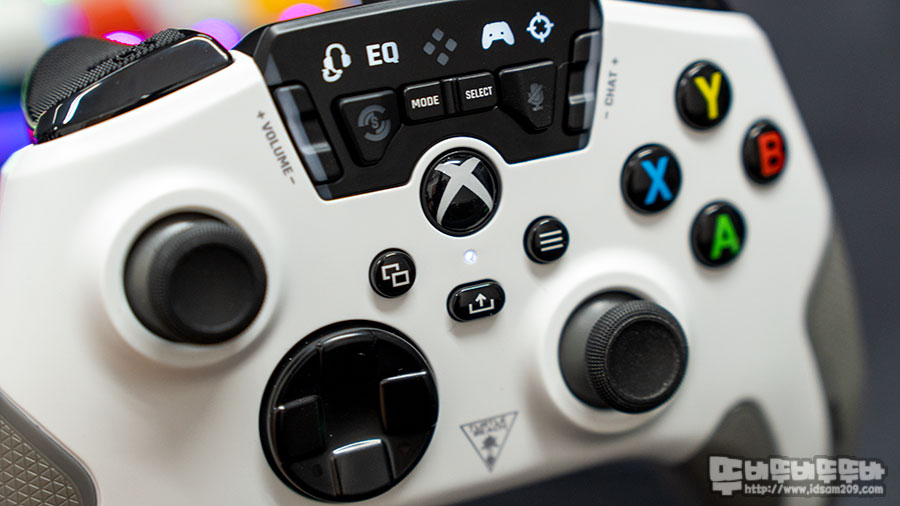 터틀비치 리콘 컨트롤러를 PC에 연결 시 Xbox 버튼 아래에 White LED 점등과 상단부의 컨트롤 메뉴에 White LED가 점등되며 작동되고 있음을 알려주는데요.
