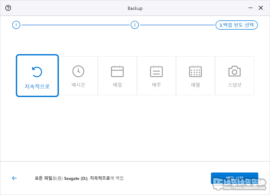 백업 기능은 지정된 일정, 시간, 요일, 주, 월 단위로 백업이 가능하기에 백업 기능을 사용하기 위해서는 PC에 연결하여 지속적인 사용이 필요할 수 있습니다.