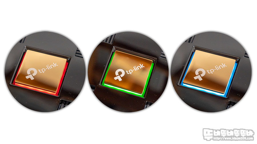 티피링크 Archer AX6000은 제품 상단의 로고 주변에 LED 점등으로 제품의 상태를 알려주는 독특함이 있는데요.