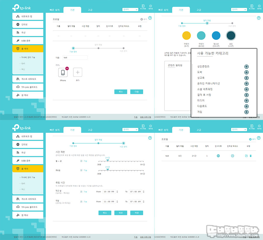 자녀 PC 제한, QoS, 바이러스 설정 등의 홈케어도 손쉽게 설정할 수 있으니 참고하여 주시기 바랍니다.