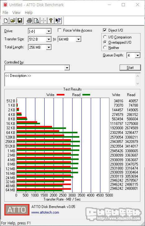 나래 온 더티 테스트에서는 최대 속도 : 3025MiB/s , 최소 속도 : 3MiB/s, 평균 속도 : 686MiB/s,