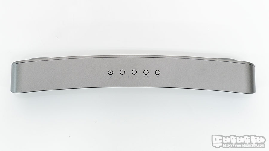 제품은 1800R 커브드가 적용된 제품이기에 커브드 모니터와 사용 시 일체감 있는 사용을 지원하며 스피커 상단에는 컨트롤 버튼이 있습니다.