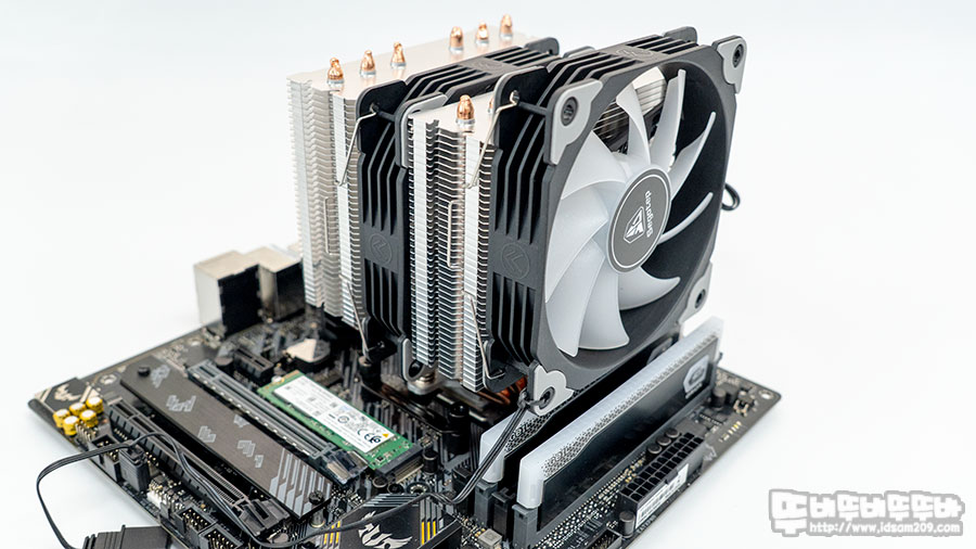 테스트 시스템에 장착한 Segotep Cambrian U6 CPU 쿨러 모습.
