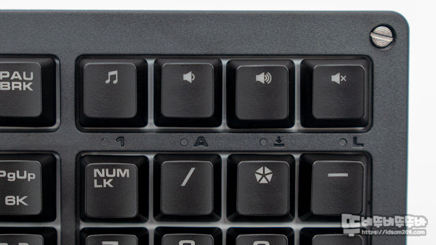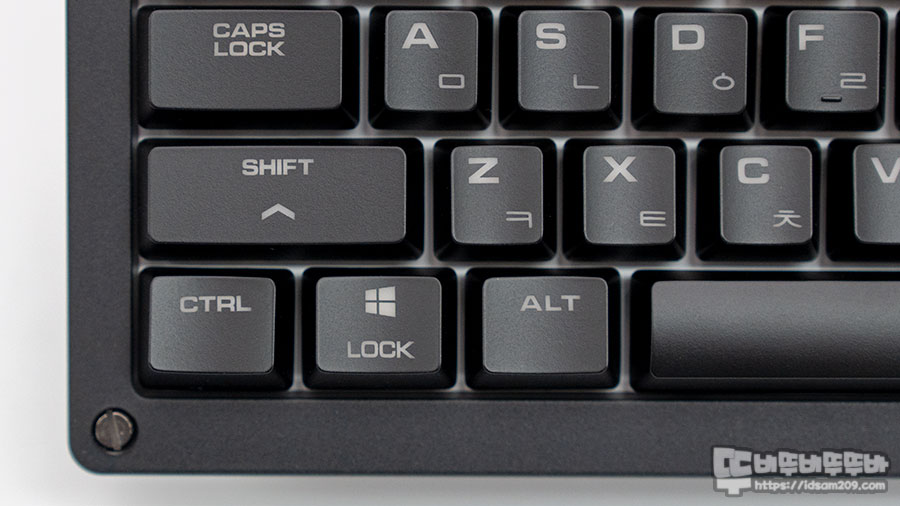 키패드와 위의 기능키 사이에 위치한 LED 인디게이트는 Num Lock (1) / Caps Lock (A) / Scroll Lock (↓) / 윈키 Lock (L)로 구성되어있지만 타핑 시 키캡에 가려 잘 보이지 않으니 이 부분은 적응이 필요해 보입니다.