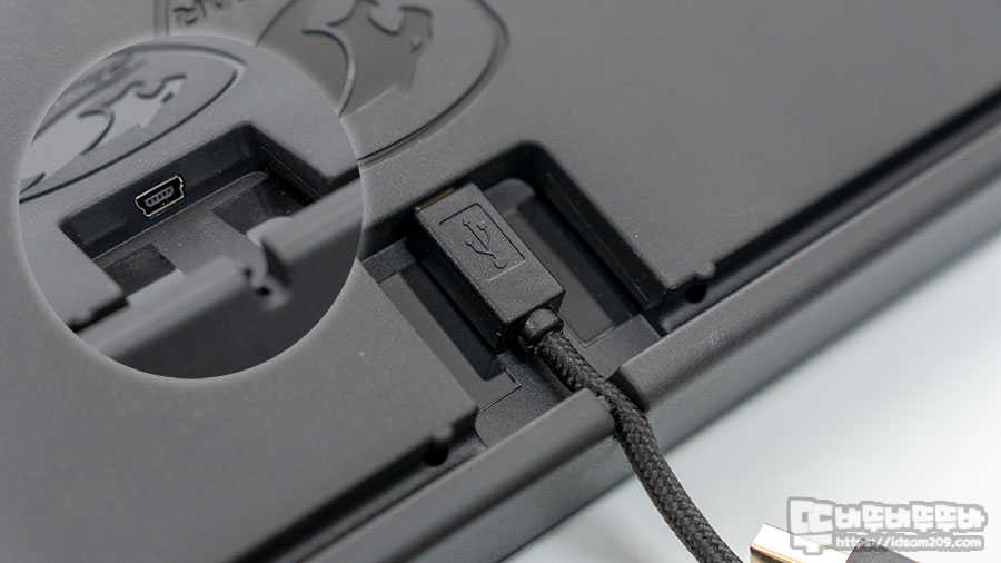 키보드 하판 위/아래에는 미끄럼을 방지는 패드 그리고 2단으로 높이를 조절하는 높이 조절 다리에도 미끄럼을 방지하는 패드가 부착되어있어 안정적인 키보드 사용이 가능합니다.