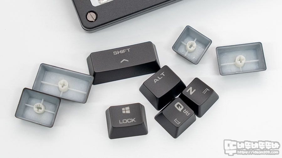 보강판용 체리 방식 스테빌라이저는 약간의 유격이 있어 타이핑 시 이로 인한 소음이 발생하는 편이니, 참고하시기 바랍니다.