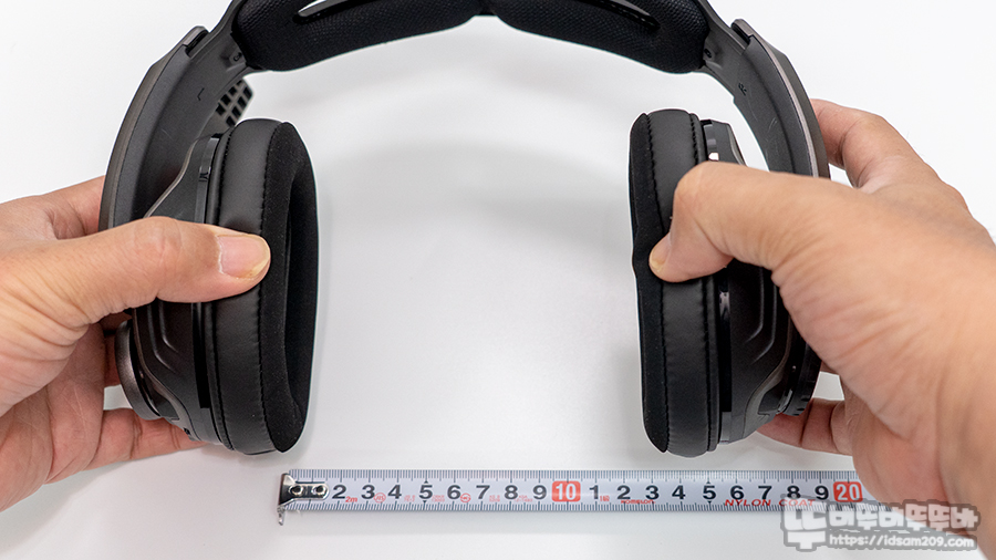 4cm 길이 확장이 가능한 헤어밴드는 최대로 늘렸을 때 헤드셋 외형이 오메가 아치형을 띄지만 이어컵 하우징이 360도 회전하면서 약간의 각도 조절이 가능한 서스펜션 구조로 디자인되어 편안하게 착용할 수 있었습니다.