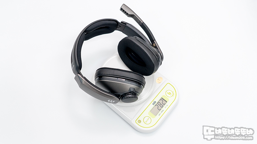 EPOS 젠하이저 GSP 370 무선 게이밍 헤드셋은 스펙 정보의 무게 285g보다 살짝 가벼운 282g으로 무선 제품치고 상당히 가벼운 편에 속하네요.