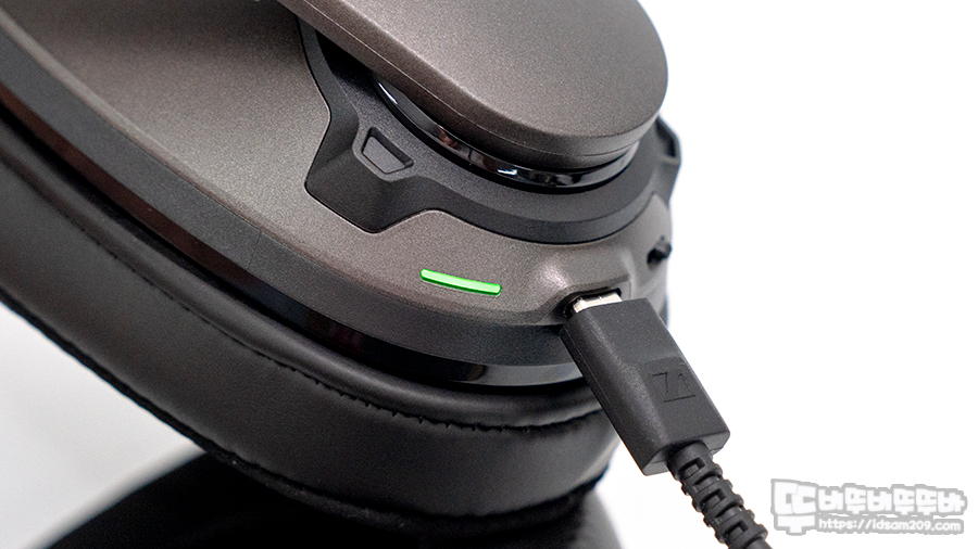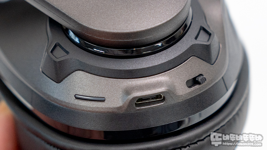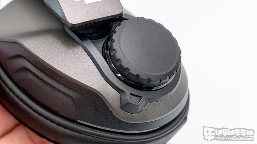 무선 헤드셋이지만 특별하게 기능이 많은 편이 아니기에 왼쪽 유닛 부분에는 MicroUSB 충전단자를 기준으로 왼쪽에는 LED 인디케이터, 오른쪽에는 조그 방식의 전원 스위치가 내장되었으며 오른쪽 유닛 부분에는 무한 볼륨 다이얼이 장착되어있습니다.