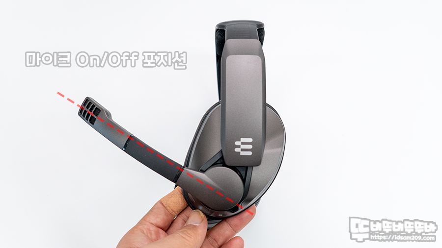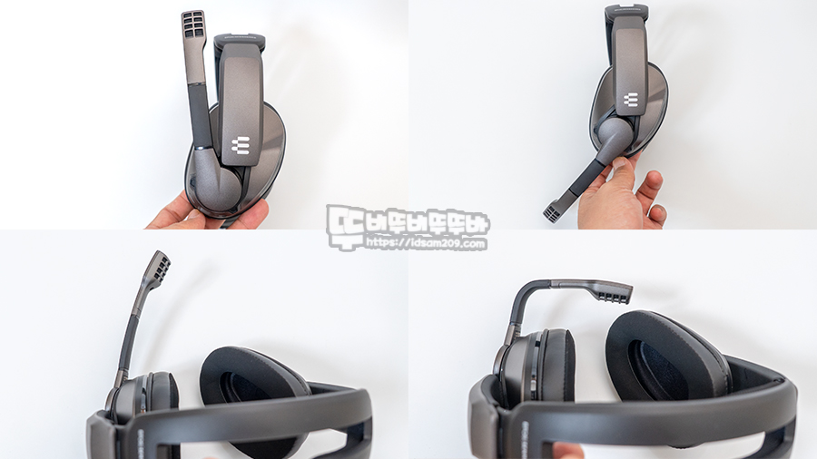 플립 방식으로 수납되는 마이크는 약 45도 각도에 마이크가 On/Off 스위치가 내장되어 45도 이상 또는 이하가 되는 경우 딸깍거리며 스위치가 작동되는 것을 느낄 수 있습니다.