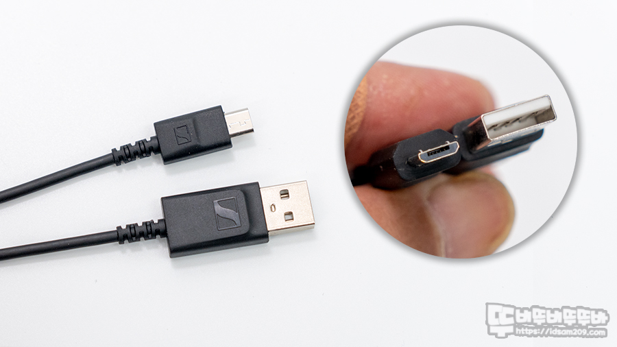 마이크로 USB 단자로 설계된 충전단자는 사진과 같이 케이블을 꽂았을때 살짝 걸치는 느낌을 주니 무리하게 끼우지 마시기 바랍니다.