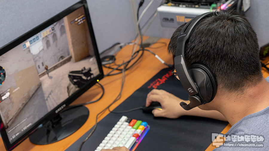 귀를 덮는 폐쇄형 이어패드는 메모리 폼에 인조가죽과 스웨이드 2가지 재질을 사용하여 피부와 접촉면은 부드럽게 귀 주변은 차음을 도와주고 있어서 몰입감 있는 게임을 지원합니다.