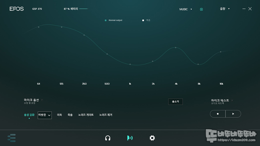 음성 강화는 마이크를 통해 상대방에게 들리는 마이크 사운드를 기본 EQ 설정으로 끄기 / 따뜻한 / 차가운 / 사용자 지정으로 선택하여 사용이 가능하니 취향에 맞게 사용하시면 되는데요.