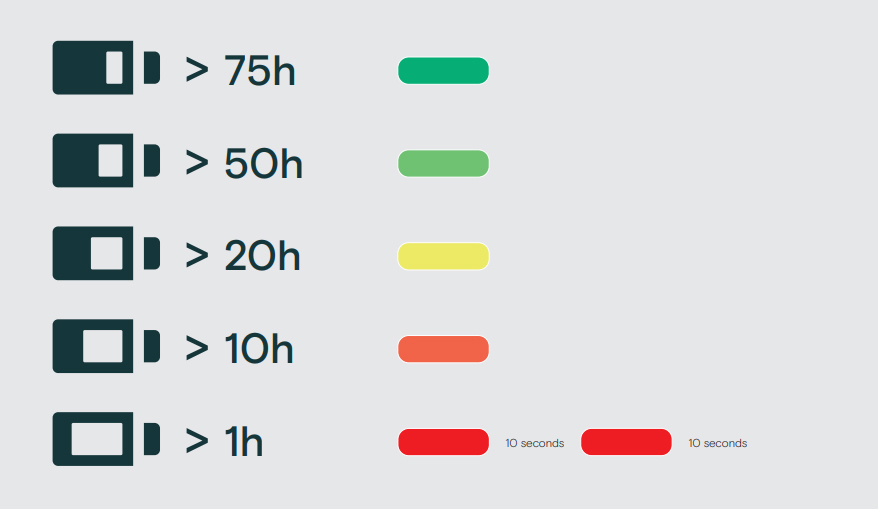 배터리 상태에 따른 LED 인디케이터 정보.