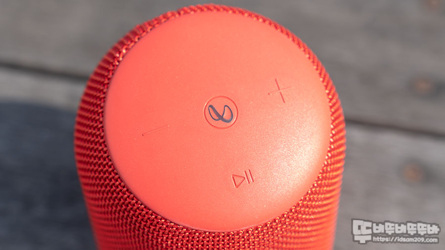 상단 컨트롤부는 중앙의 인피니티 로고, +, - , 재생/일시 정지 기능은 버튼은 스위치로 작동하기에 누르는 힘이 조금 필요한 편입니다.
