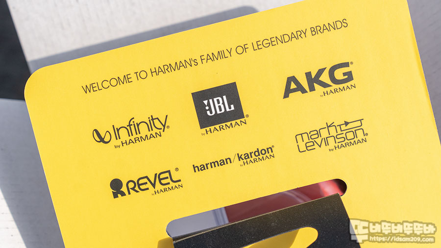 패키지를 개봉하면 마주하게 되는 하만카돈 산하의 다양한 브랜드 로고 모습.