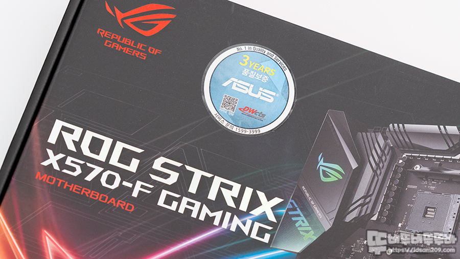 먼저 ROG 로고와 모델명 그리고 3년 품질보증을 하는 유통사 스티커를 확인할 수 있으며 해당 제품은 대원씨티에스가 유통합니다.