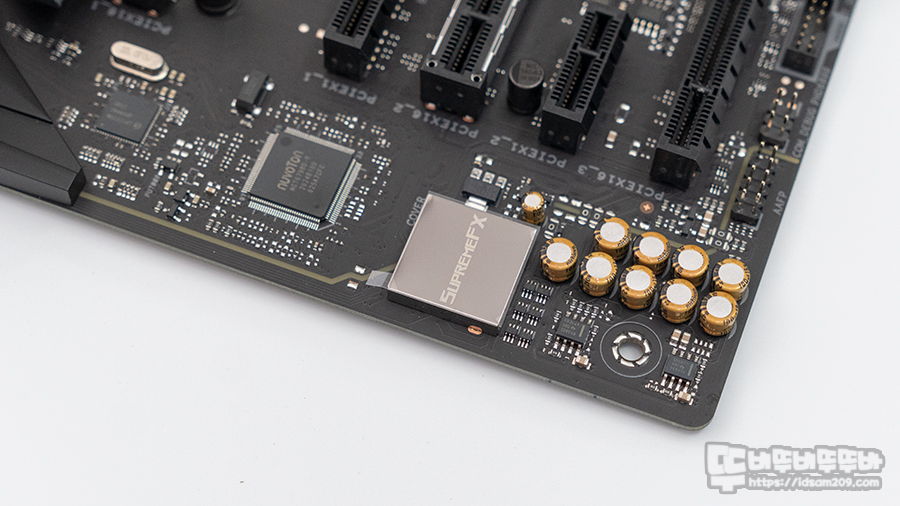 12+2 페이즈로 구성된 전원부는 고품질 초크와 내구성 높은 캐패시터 사용 그리고 DIGI+VRM 컨트롤이 적용되어 안정적인 전원 공급을 지원으로 오버클럭을 지원합니다.