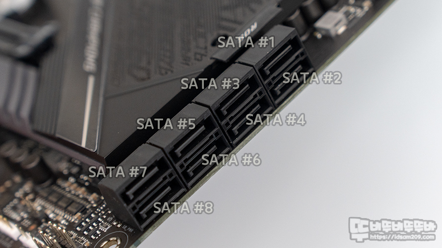 6Gb/s 속도를 지원하는 SATA 포트는 8개를 지원하고 있어 저장 장치 연결을 넉넉하게 있습니다.
