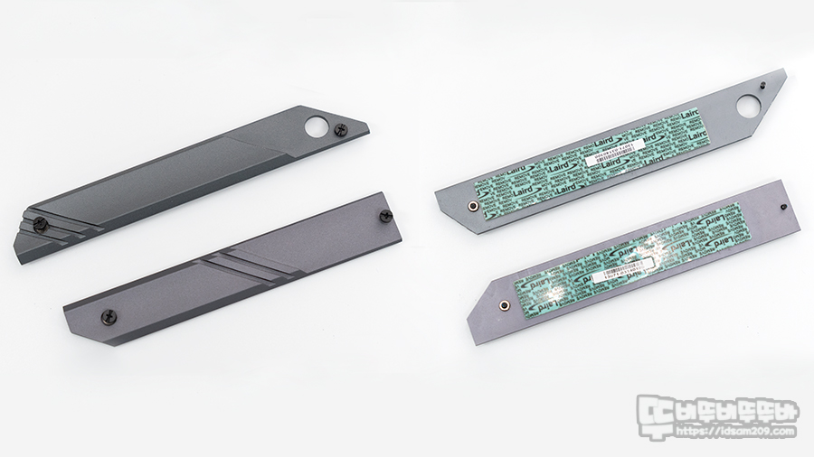 M.2 히트싱크 윗면과 써멀 패드가 부착된 아랫면 모습.