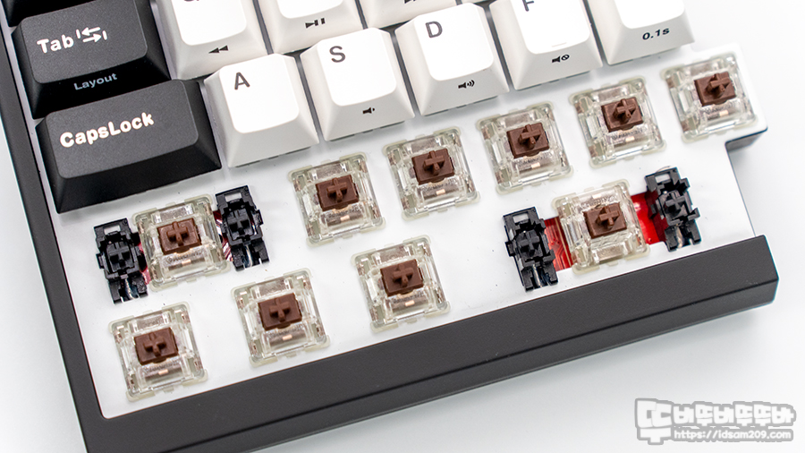 키캡은 화이트/블랙 투톤 조합의 PBT 이중사출 키캡을 사용하였는데요.