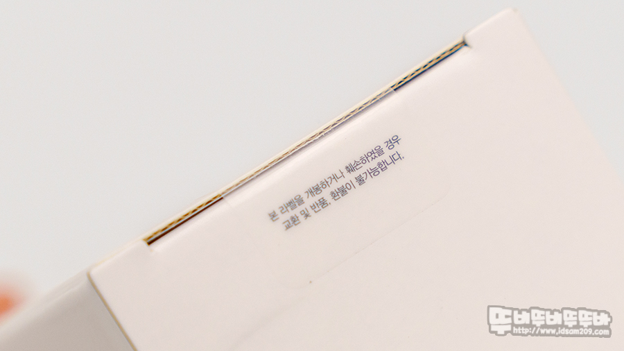 개봉 시 교환, 반품, 환불 불가하다는 안내 문구가 인쇄된 봉인씰 모습.