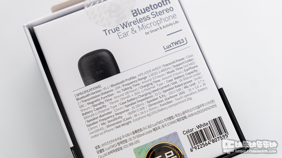 브리츠 LuxTWS3 블루투스 이어폰 패키지에는 제품의 외형 디자인 그리고 제품의 다양한 특징을 표현하고 있습니다.