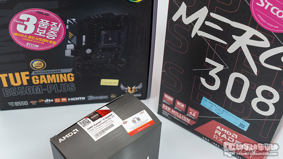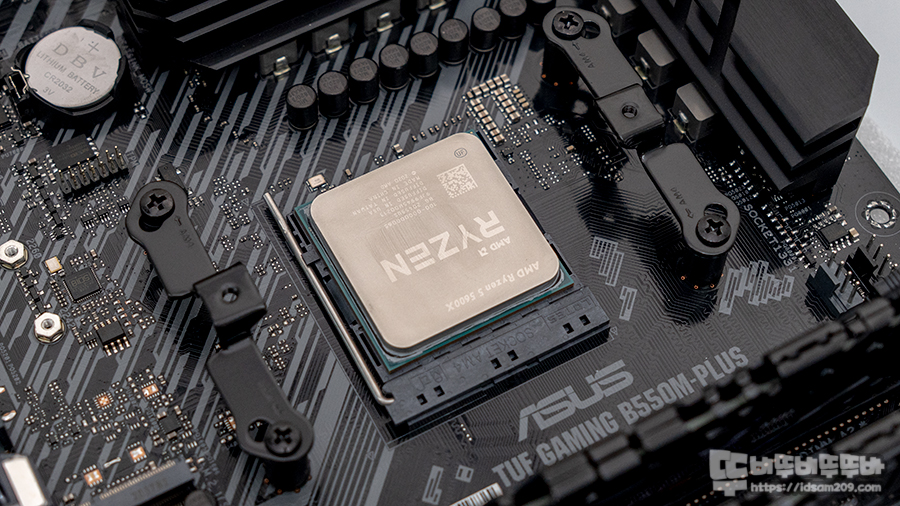 ASUS TUF Gaming B550M-Plus 메인보드에 라이젠 5-4세대 5600X 장착한 모습입니다.
