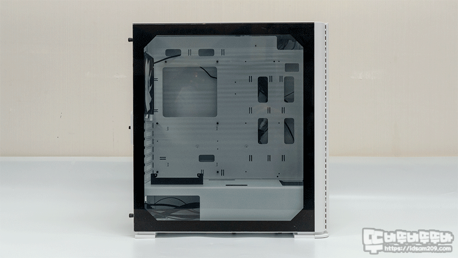 강화유리 사이드 패널은 전면 테두리 부분은 검정 컬러로 마킹 처리하여 케이스 샤시 접촉면에 노출이 안되게 해주고 있는데요.